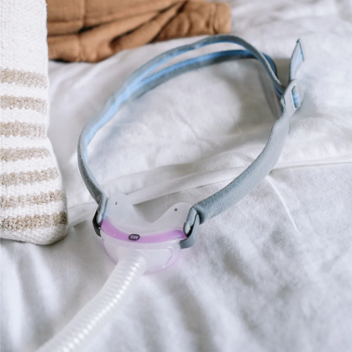 Small, easy to use and quiet – ResMed AirFit™ N30 is the CPAP mask that discreetly fits into your lifestyle to help you adjust to therapy. Featuring a QuickFit™ elastic headgear that slips on like a pair of goggles, it’s designed to fit right out of the package. It’s our lightest mask ever* with a compact, but incredibly soft, nasal cradle cushion that rests under your nose and curves around the nostrils, hugging them and sealing comfortably. And it includes ResMed QuietAir™ vent technology, designed to minimize noise by breaking up exhaled air so it’s spread out lightly for a more peaceful bedroom.